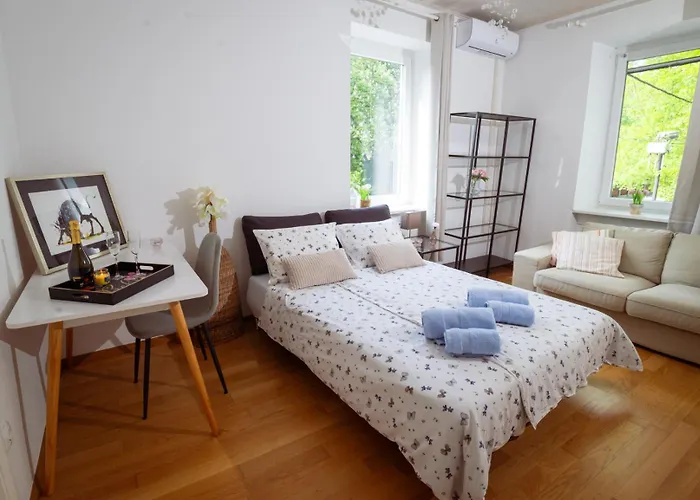 Gasten van het appartement van 70 m² kunnen het centrum van Ljubljana bereiken met een wandeling van 15 minuten en het Park Špica bezoeken, op slechts 550 meter hier vandaan. Het is op 5 minuten loopafstand van Trnovski Pristan Embankment gelegen, terwijl Ljubljana treinstation op 2 km verderop ligt. Het duurt niet lang om het Kasteel van Ljubljana te bereiken, op 1 km afstand.